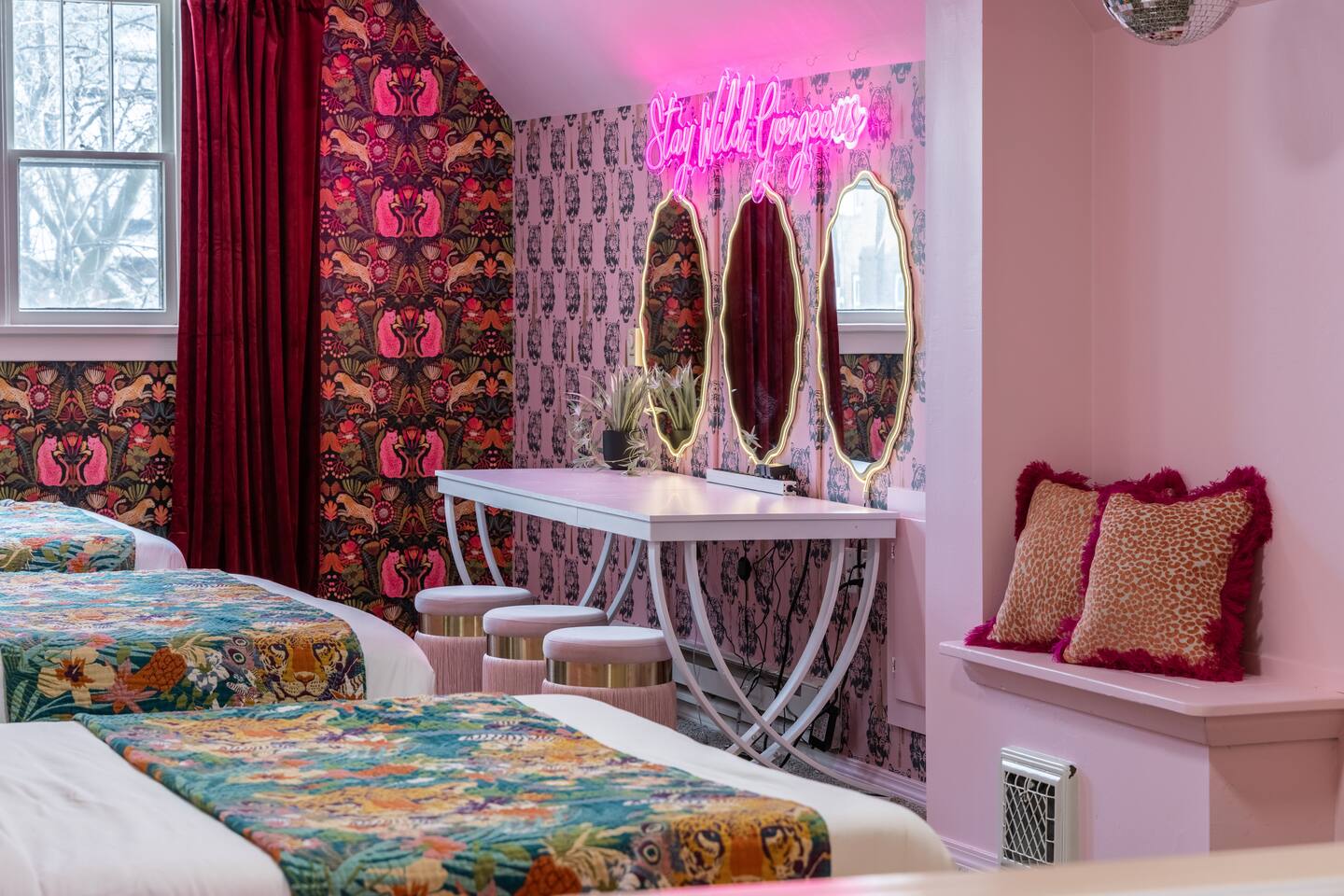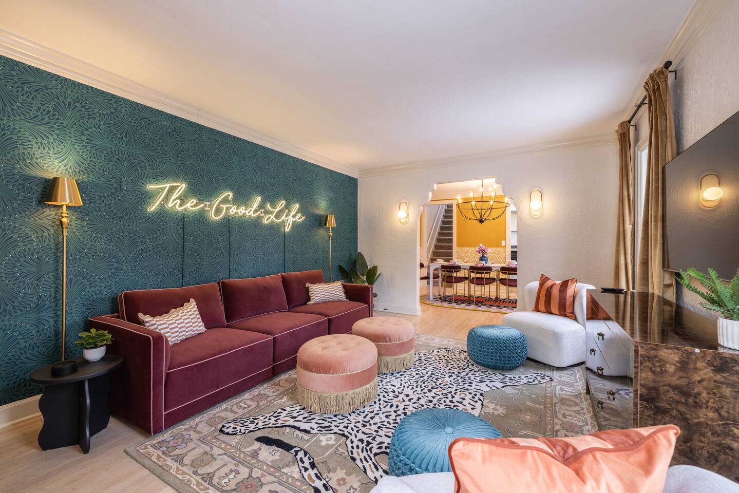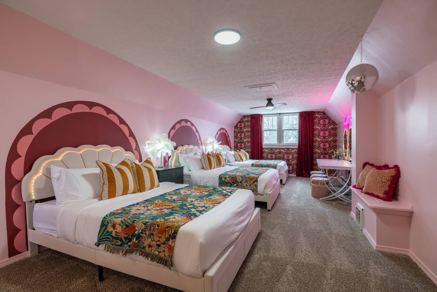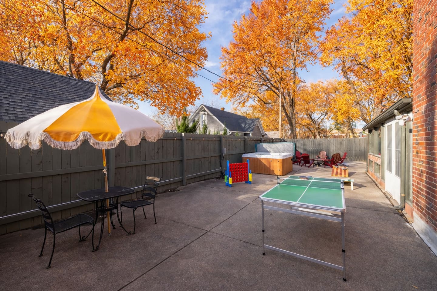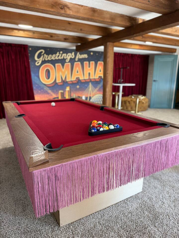 🎉 What Makes This Place Special * Private hot tub / jacuzzi * Dedicated karaoke room * Pool table & shuffleboard * Outdoor games * Multiple hangout zones across three levels This is an experience-first home, not just a place to sleep. 🏡 The Space Spread out across three full levels, the home offers plenty of room for groups to gather without feeling crowded. * Open, social common areas * Bold, eclectic design with classic Tudor charm * Comfortable seating throughout * Designed to host groups responsibly and comfortably 🛏️ Sleeping Arrangements * Bedroom 1 (1st Floor): 1 King bed * Bedroom 2 (1st Floor): 1 King bed * Bedroom 3 (2nd Floor): 3 Queen beds * Bedroom 4 (Basement): 2 Double beds Fresh linens and pillows are provided for every stay. 🚿 Bathrooms * 3 full bathrooms * One on each level (1st floor, 2nd floor, basement) * Matching layouts and finishes throughout 🌳 Outdoor Space Enjoy a private outdoor area perfect for: * Games and casual hangouts * Relaxing between activities * Unwinding after a soak in the hot tub 📍 Location Centrally located in Country Club/Benson with easy access to Omaha dining, nightlife, and local attractions — while still offering the space and privacy groups love. ⭐ Good to Know * Ideal for responsible group stays * Self check-in * Quiet hours observed * No large events or unauthorized parties