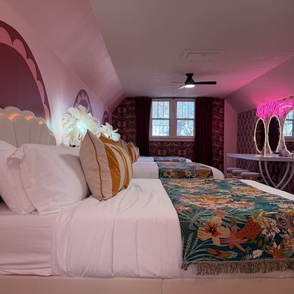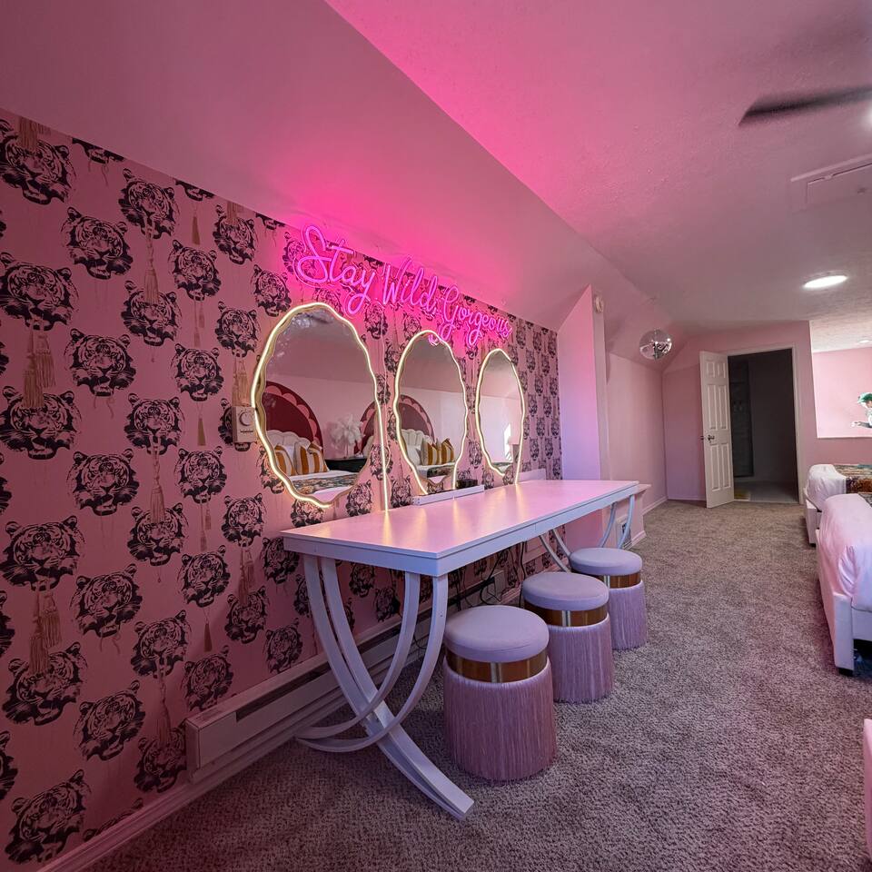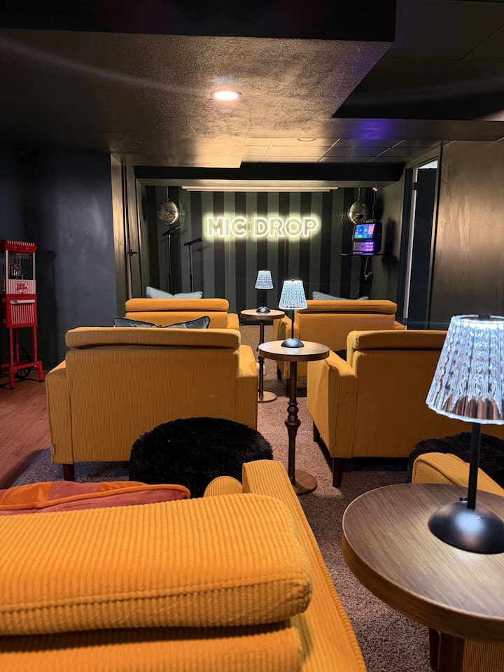A one-of-a-kind Tudor-style home designed for memorable group stays, this space blends character, comfort, and entertainment. From the private hot tub to the karaoke room and multiple game areas, this home is built for connection, laughter, and great nights — all under one roof. Perfect for friend groups, bachelorettes, birthdays, and social getaways.